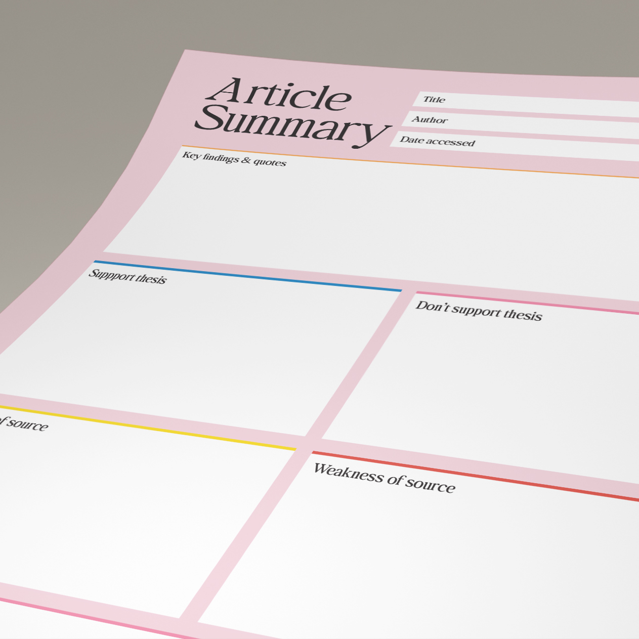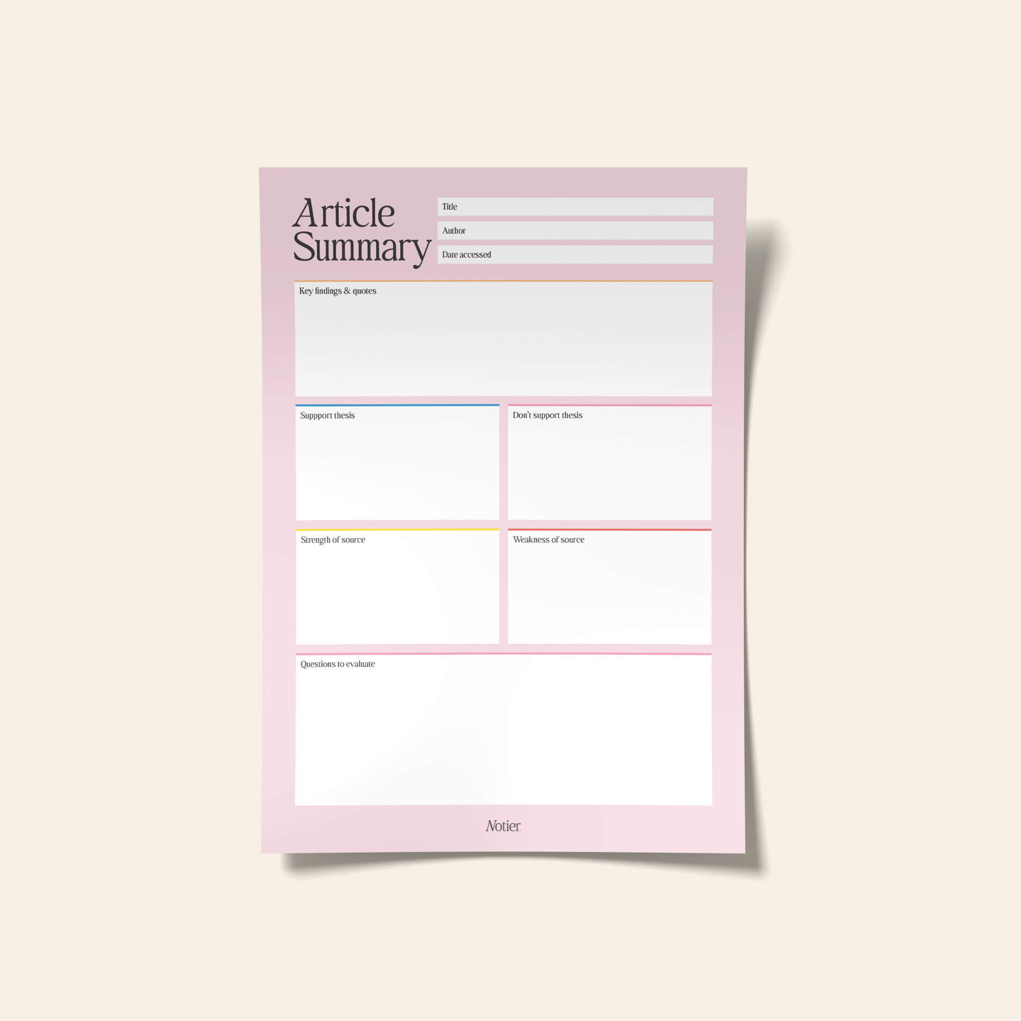 Tackle your reading list with this essential A4 Article Summary notepad. The structured layout guides you through critically appraising a paper, ensuring you record all the vital information needed for citations and revision. A must-have tool for any student wanting to master their research modules.