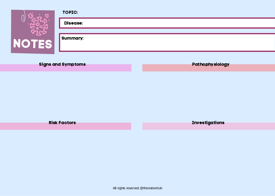 These premium quality flashcards are designed to make learning diseases a whole lot easier. The preformatted template allows you to have all the important points all on one card making it ideal for revision purposes. Perfect for medical, nursing, pharmacy and paramedic students!