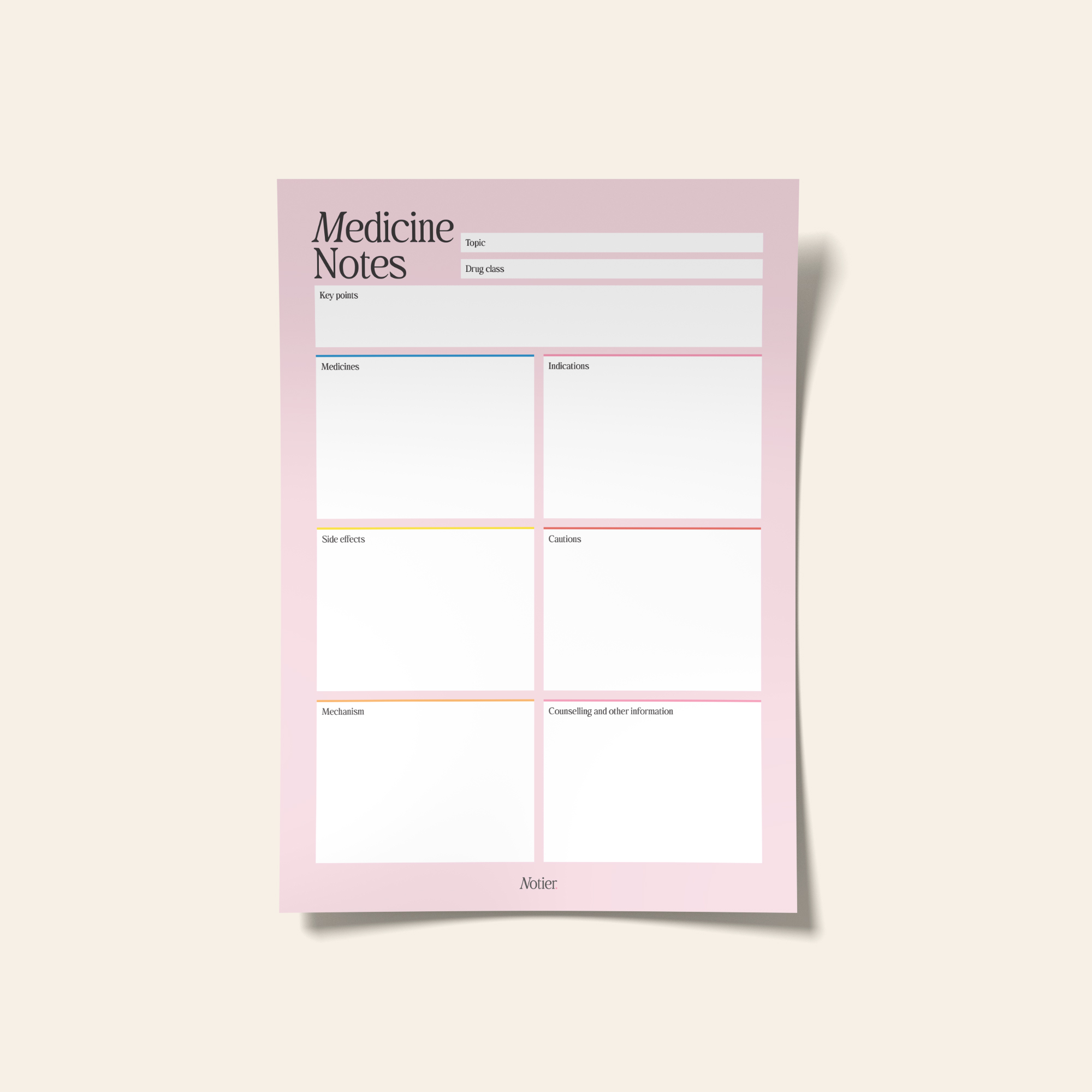 This premium A4 notepad just made studying pharmacy a whole lot easier. With all the relevant headings laid out on a single page, organising your drug class summaries has never been simpler. Perfect for creating the ultimate revision guide and mastering your pharmacology modules.