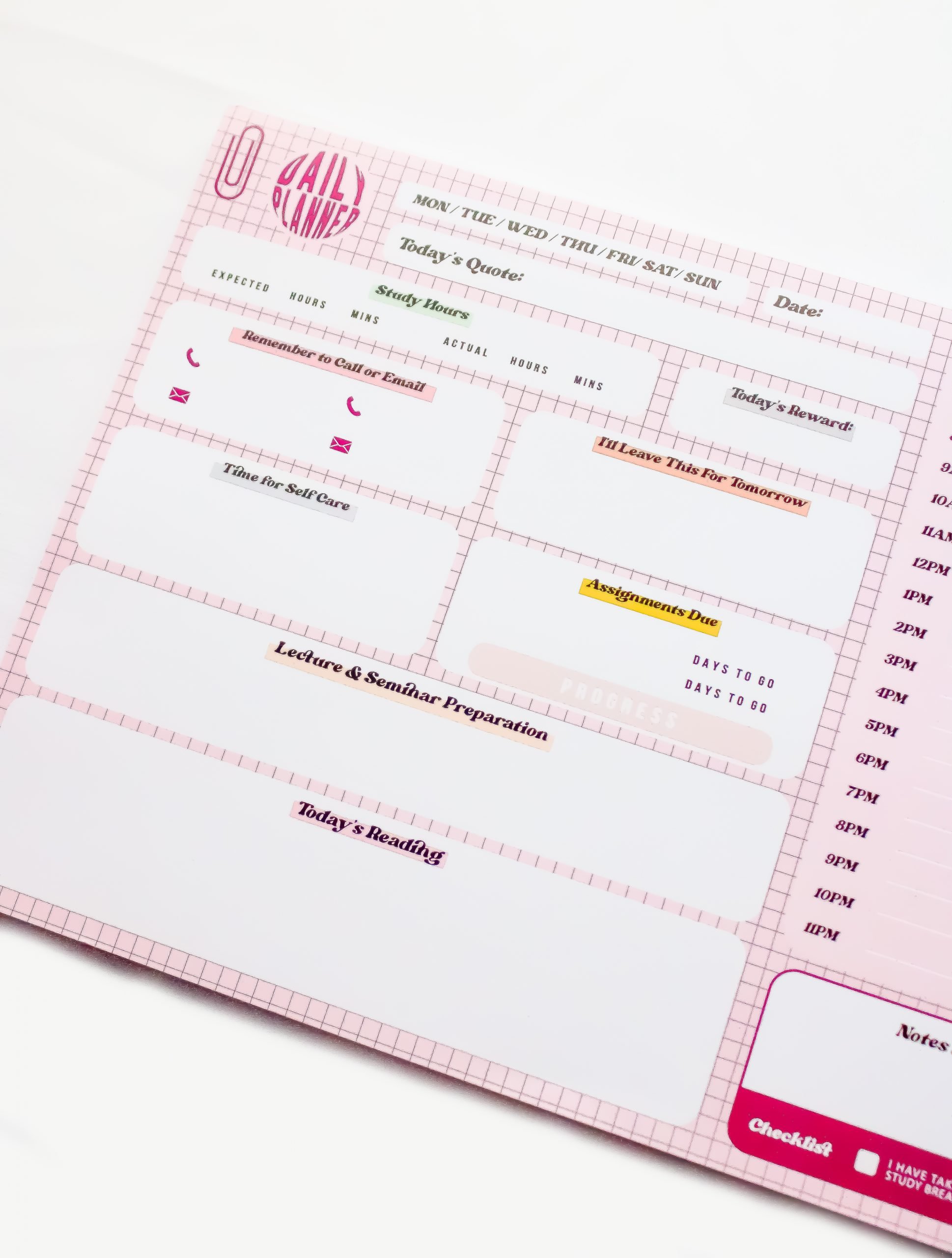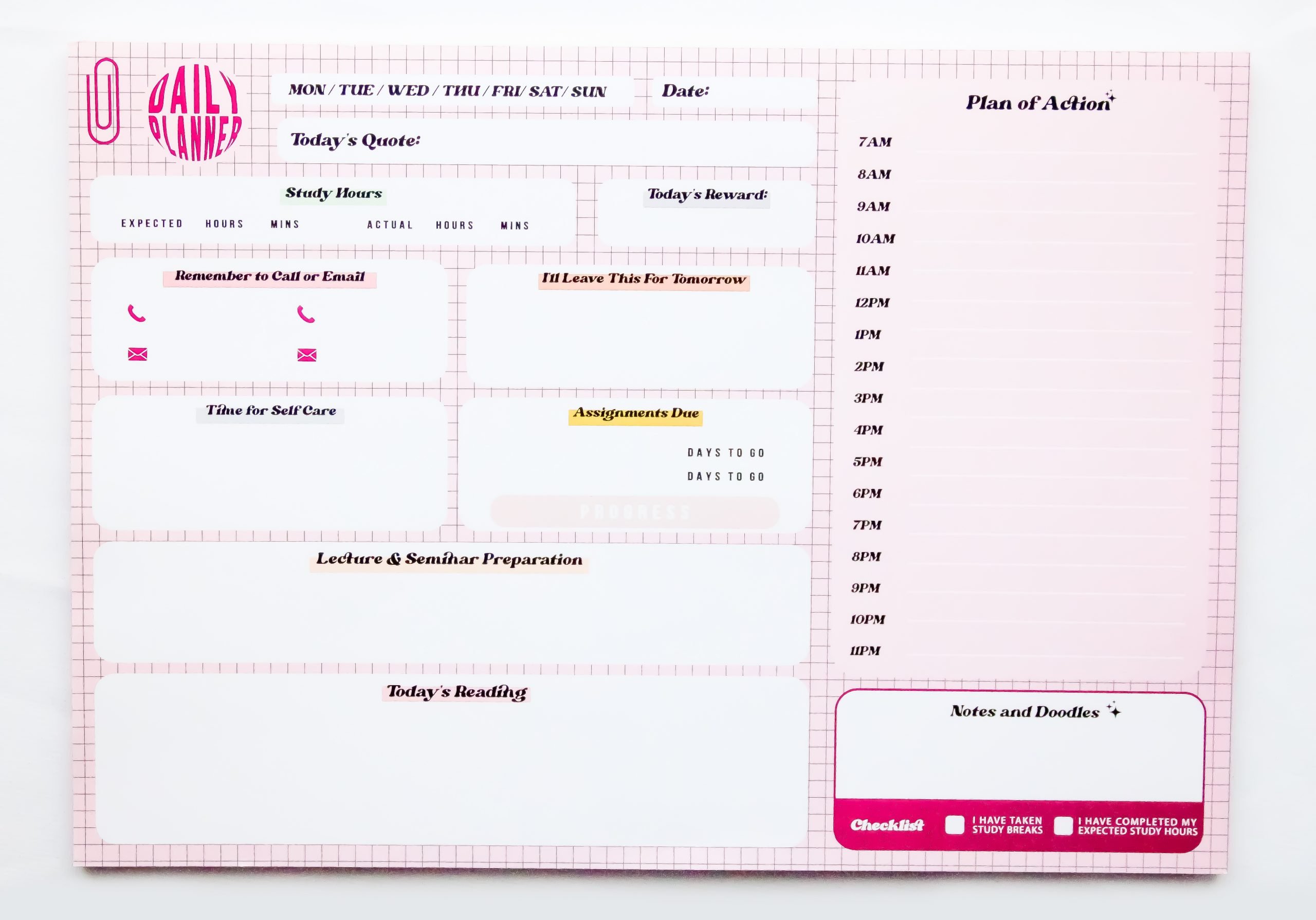 This stunning glossy notepad comes with 50 A4 pages! The pad has been researched to be bespoke to all students and offers efficient planning of your day. The format ensures increased productivity and better organisation. This product will become your study partner.